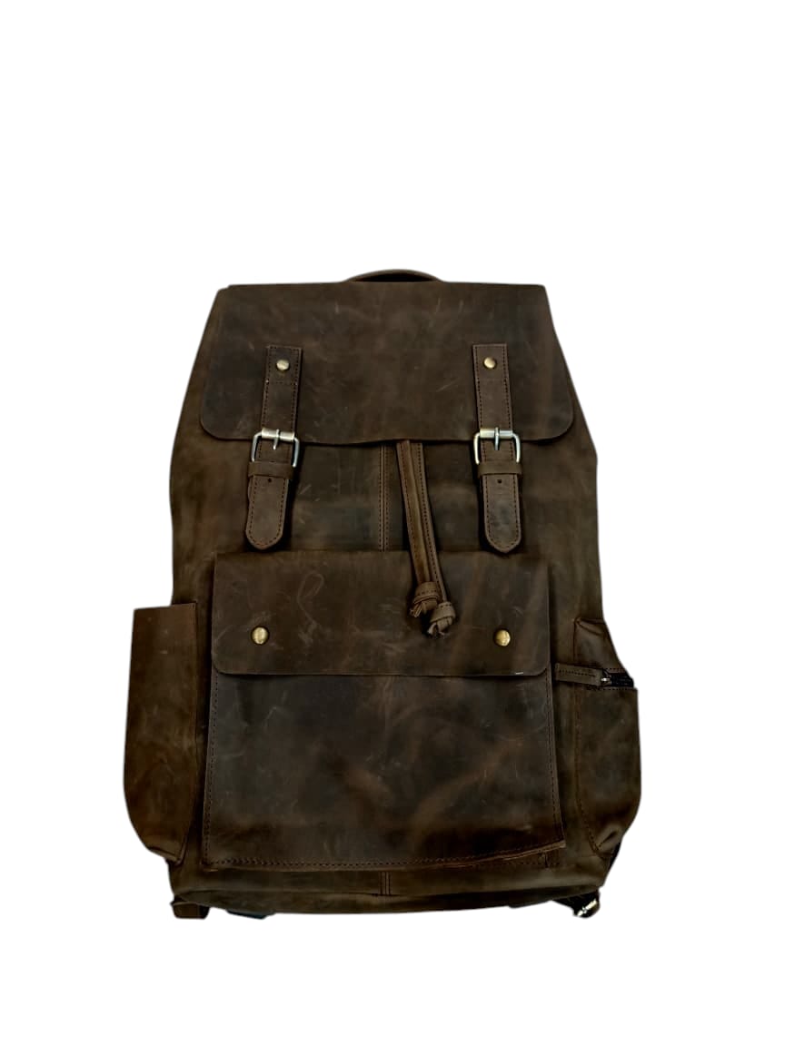 Made from premium distressed leather, this backpack develops a richer character over time. The flap closure with buckle straps adds a heritage feel, while the spacious compartments make it perfect for work, travel, or daily carry.